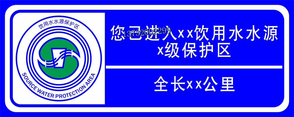 道路警示牌采用《道路交通标志和标线》(GB5768)中告示牌的形式。左边饮用水水源保护区图形标,右边书写“您已进入**饮用水水源*级保护区 全长**公里”或“您已进入**饮用水水源*级保护区 从**至**”,提示过往车辆及行人谨慎驾驶或行为。